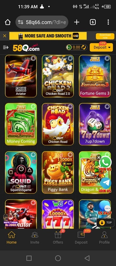 58Q game is an online gaming platform offering quick rounds and multiple game modes. Where players can win rewards and houses.