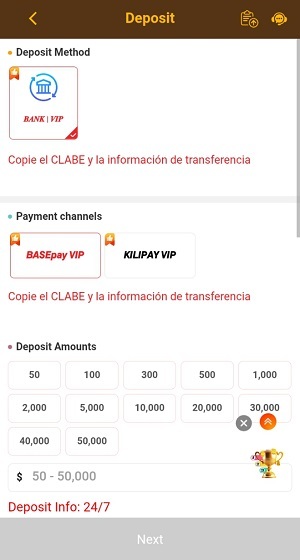 - Enter the amount you want to deposit in the game.