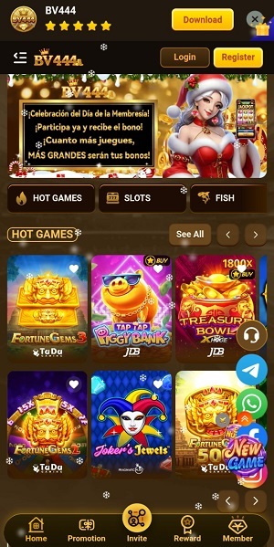 The BV444 game offers many quick and luck-based games like Jilli slots, Card games, number prediction game, spin and win rounds, and other mini games like fortune rabbit, fishing games, and many more are designed for fast play and simple rules.