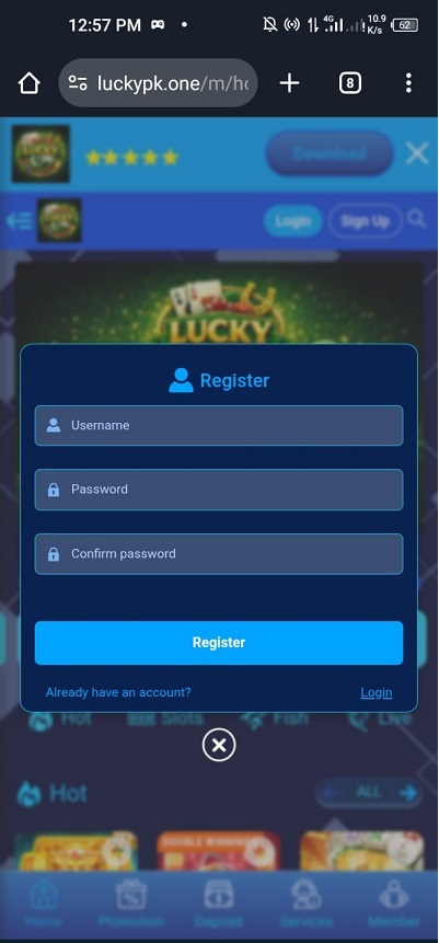 How to register on LuckyPK Game on your Phone?