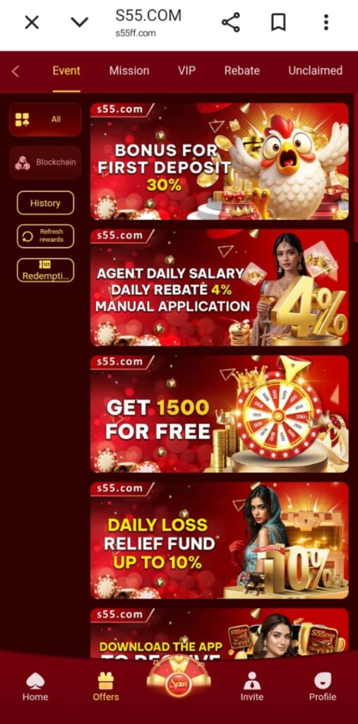 Bonus Offers by S55 Game: